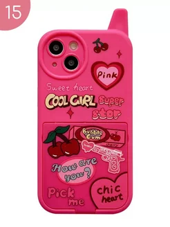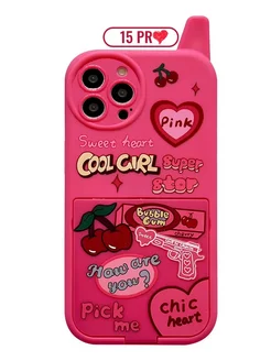 Чехол для iPhone 15 силиконовый с принтом и зеркалом