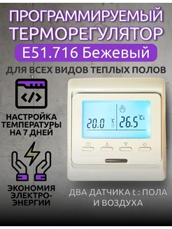 Терморегулятор E51.716 встраив, бежевый, до 3520Вт 1штука