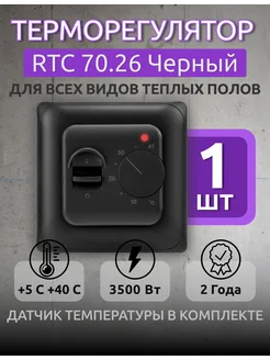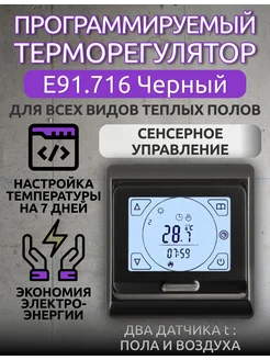 Терморегулятор для теплого пола, чёрный матовый 1шт