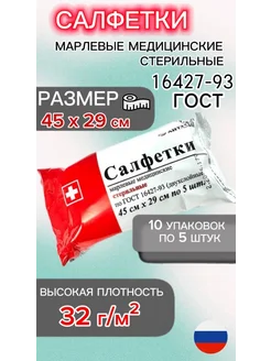 Салфетки марлевые медицинские стерильные 45х29 см9 10 шт)