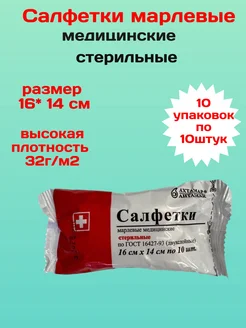 Салфетки марлевые медицинские стерильные 16х14 см ( 10 шт)