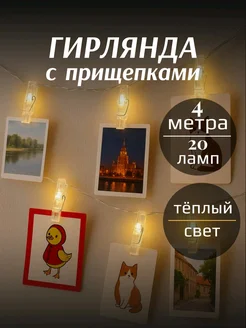 Гирлянда светодиодная с прищепками для фото 4 метра
