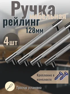 Ручка мебельная рейлинг 128 мм металлик хром 4шт