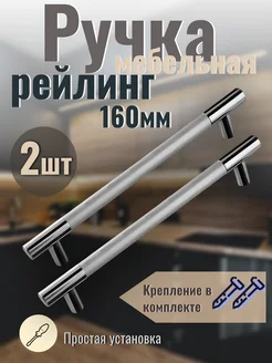 Ручка мебельная рейлинг 160 мм металлик хром 2шт
