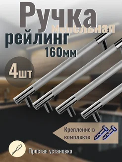Ручка мебельная рейлинг 160 мм металлик хром 4шт