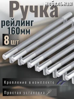 Ручка мебельная рейлинг 160 мм металлик хром 8 шт