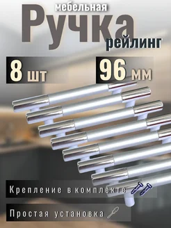 Ручка мебельная рейлинг 96 мм металлик хром 8 шт
