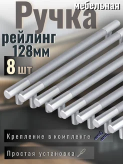 Ручка мебельная рейлинг 128 мм металлик хром 8 шт