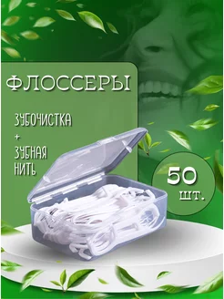 Флоссеры, зубочистки с зубной нитью 50 штук
