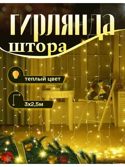 Гирлянда штора на окно 3х2 5 Новогодняя