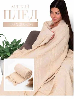 Плед вязаный 150х200 на кровать бежевый мягкий