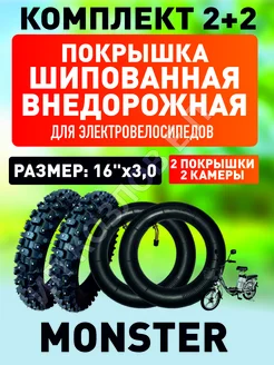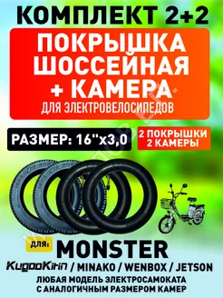 Покрышка+камера шоссейная для электровелосипеда Monster 16х3