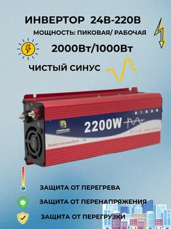 Инвертор преобразователь напряжения 24В-220В 2200 Вт 1000Вт