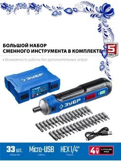 Аккумуляторная отвертка с набором 33 бит PSD-4S