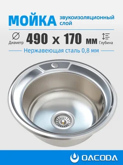 Мойки для кухни круглая нержавеющая врезная 49см,0.8mm