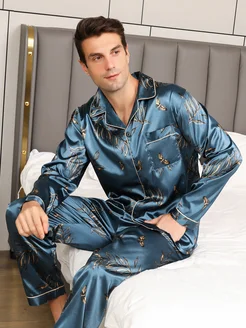 Пижама из ледяного шелка с длинными рукавами и драконом