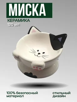 Миска керамическая "мордочка кошки" на высокой ножке 200мл
