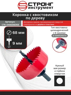 Коронка по дереву и гипсокартону 68 мм в наборе