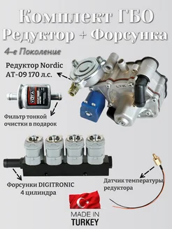 Форсунки ГБО 4 поколения + Редуктор газовый Nordic 170 л.c