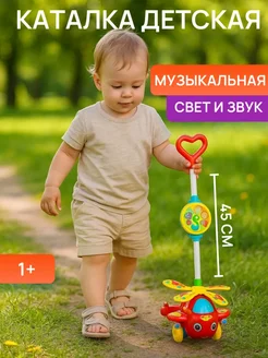 Каталка детская с ручкой Вертолетик
