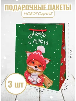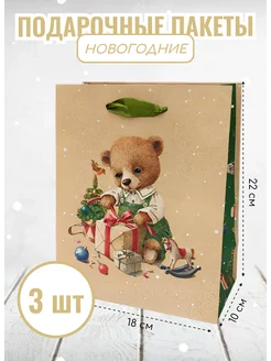 Подарочный новогодний крафтовый пакет с ручками, набор 3 шт
