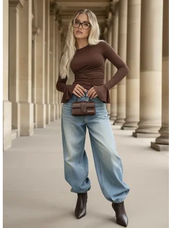 Топ сливочное масло Лонгслив облегающий с драпировкой