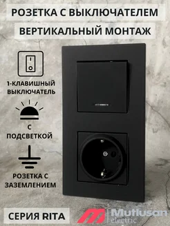 Розетка с выключателем одноклавишным с подсветкой вертик