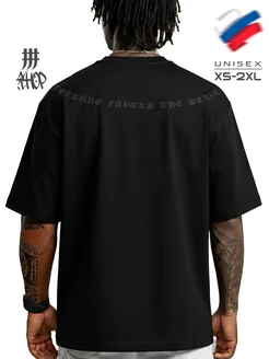 Футболка оверсайз черная с гербом на спине Russia