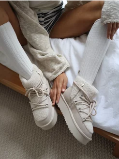 Угги мунбуты со шнурками луноходы на платформе зимние