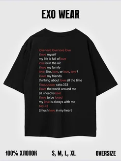 Футболка черная oversize, свободная с принтом "LOVELOVE"