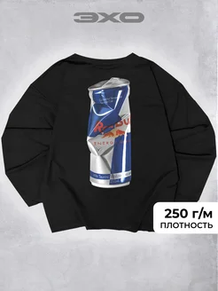 Лонгслив черный оверсайз, плотный с принтом "RedBull"