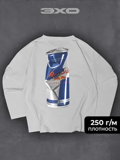 Лонгслив белый оверсайз, плотный с принтом "RedBull"