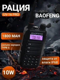 Рация UV-16 Pro (двухдиапазонная), 10 км, c Type-C