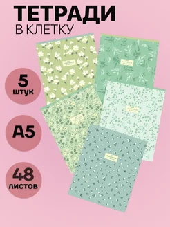 Тетрадь 48 листов А5 клетка 5 штук для девочки в школу