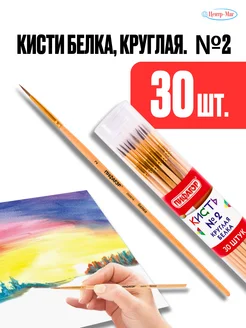 Кисти белка, круглая, № 2, ручка, с колпачком, 30 шт