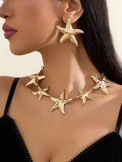 Колье с цепочкой в виде большой звезды и серьги-гвоздики