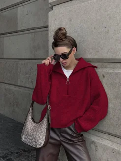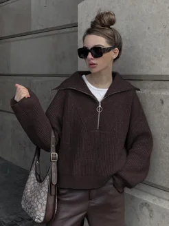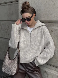Свитер вязаный оверсайз на молнии теплый мягкий