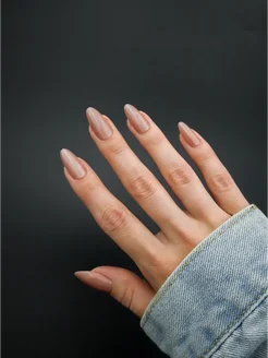 Накладные ногти с клеем и дизайном кошачий глаз длинные