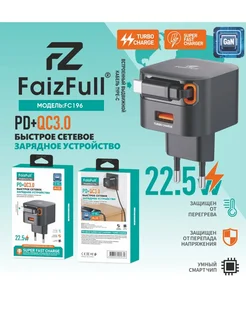 Быстрая Зарядка PD+QC3.0 (Встроенный кабель type-c) 22.5w
