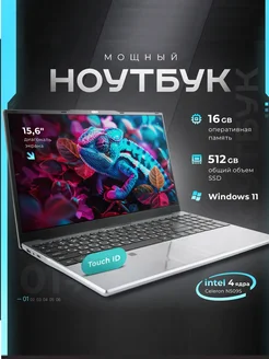 Ноутбук 15 6" IPS Intel 4 Ядра 16GB SSD 512GB Windows 11