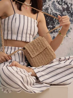 Сумка соломенная через плечо кросс боди плетеная