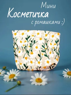 Косметичка мягкая с ромашками тканевая