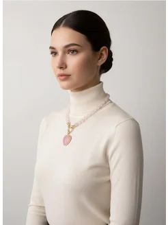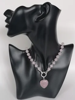 Колье бусы розовый кварц сердце