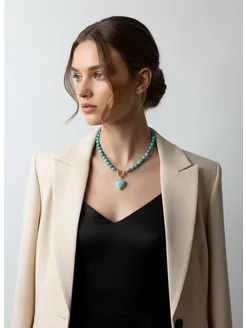 Колье бусы бирюза (турквенит) 8 мм
