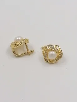 Серьги с натуральным жемчугом и фианитами