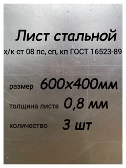 Лист металлический стальной 0,8х600х400 мм, 3 шт
