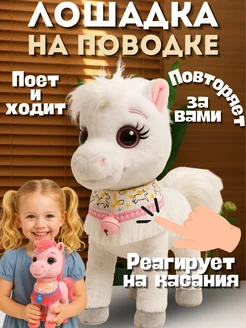 Лошадка интерактивная мягкая игрушка лошадка на поводке