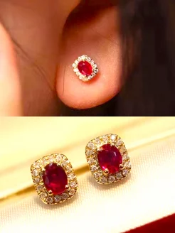 Серьги пусеты позолота с красным камнем