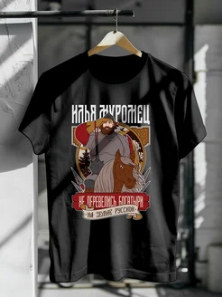 Футболка черная с принтом Русский Богатырь Илья Муромец
