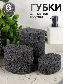 Губки для посуды овальные черные 6шт